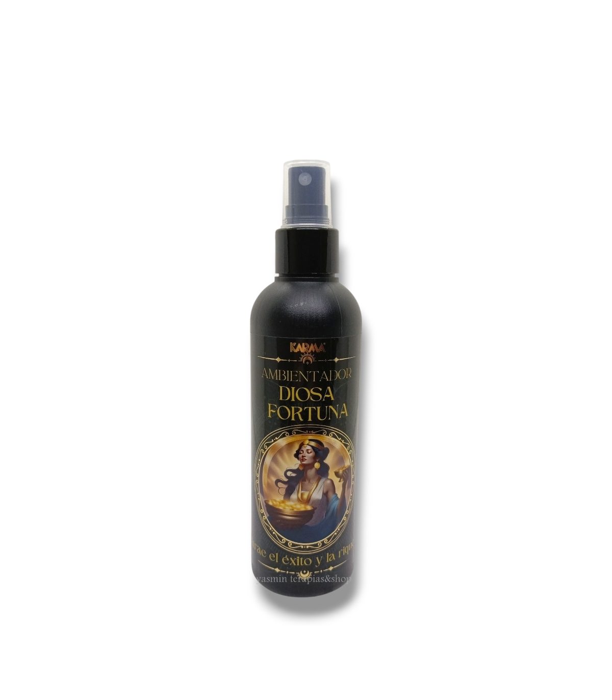 Ambientador Diosa de la Fortuna, especial para utilizar tanto en casa como en el negocio, cuando queremos que la prosperidad económica y monetaria aparezca en nuestras vidas. Este ambientador está elaborado con aceites y esencias apropiados para conseguir el fin deseado. Formato spray.
