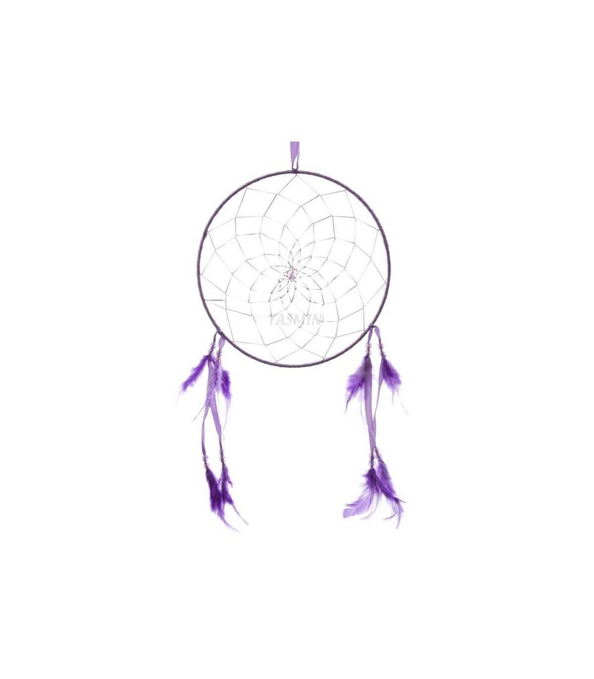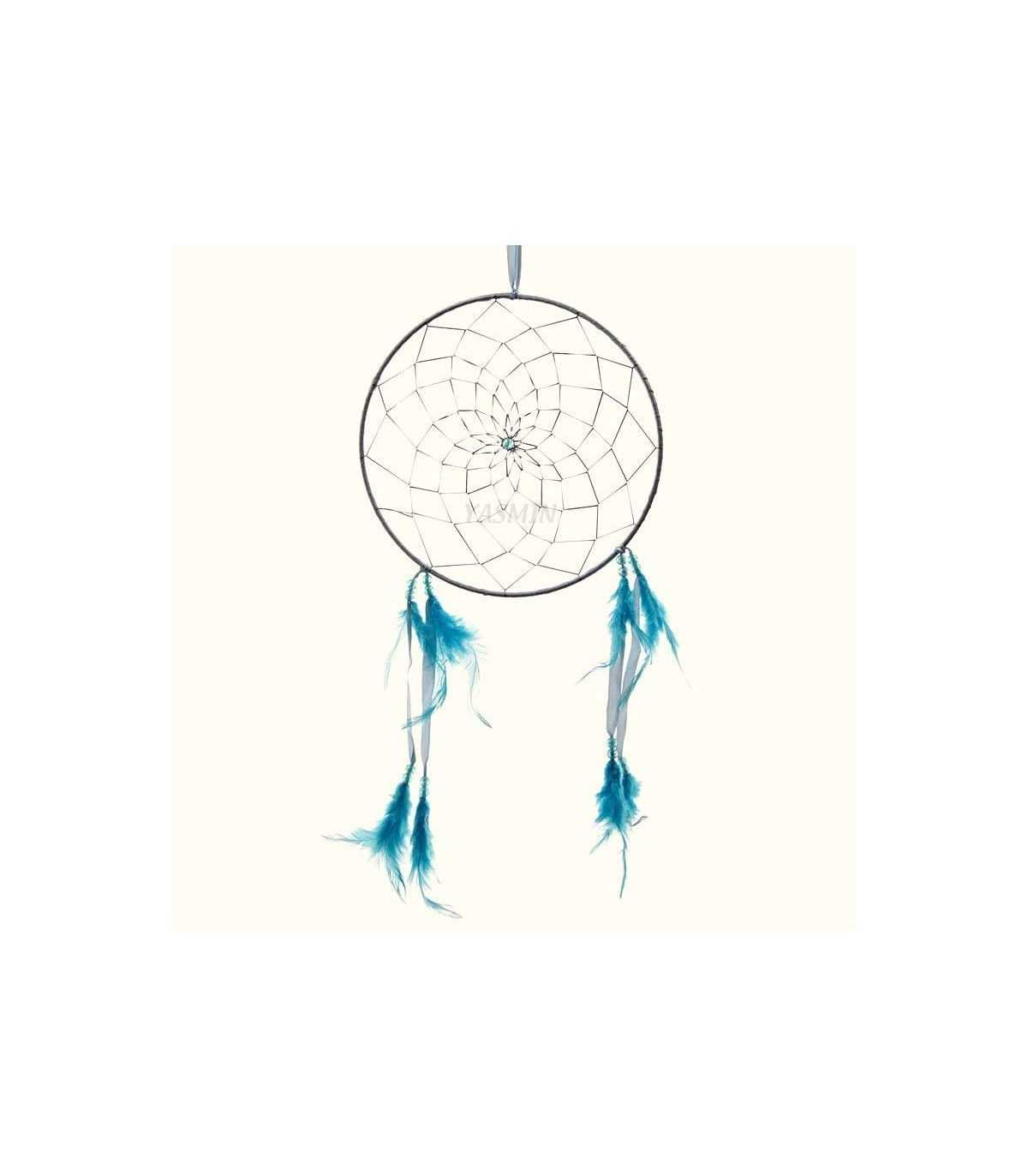 Atrapasueños circular. La leyenda sobre los atrapasueños cuenta que fue creado por los dioses venerados por los pieles rojas para protegerles del mal. Situado en el dormitorio canaliza los sueños positivos y aleja las pesadillas del durmiente. La leyenda cuenta que si tienes una pesadilla, ésta queda atrapada en la red del atrapasueños, y los primeros rayos del sol la quema, deslizándose sus cenizas a través de sus plumas colgantes. En un salón evita la negatividad y hostilidad, propiciando bienestar y armonía. MEDIDA: 20 cms. diámetro