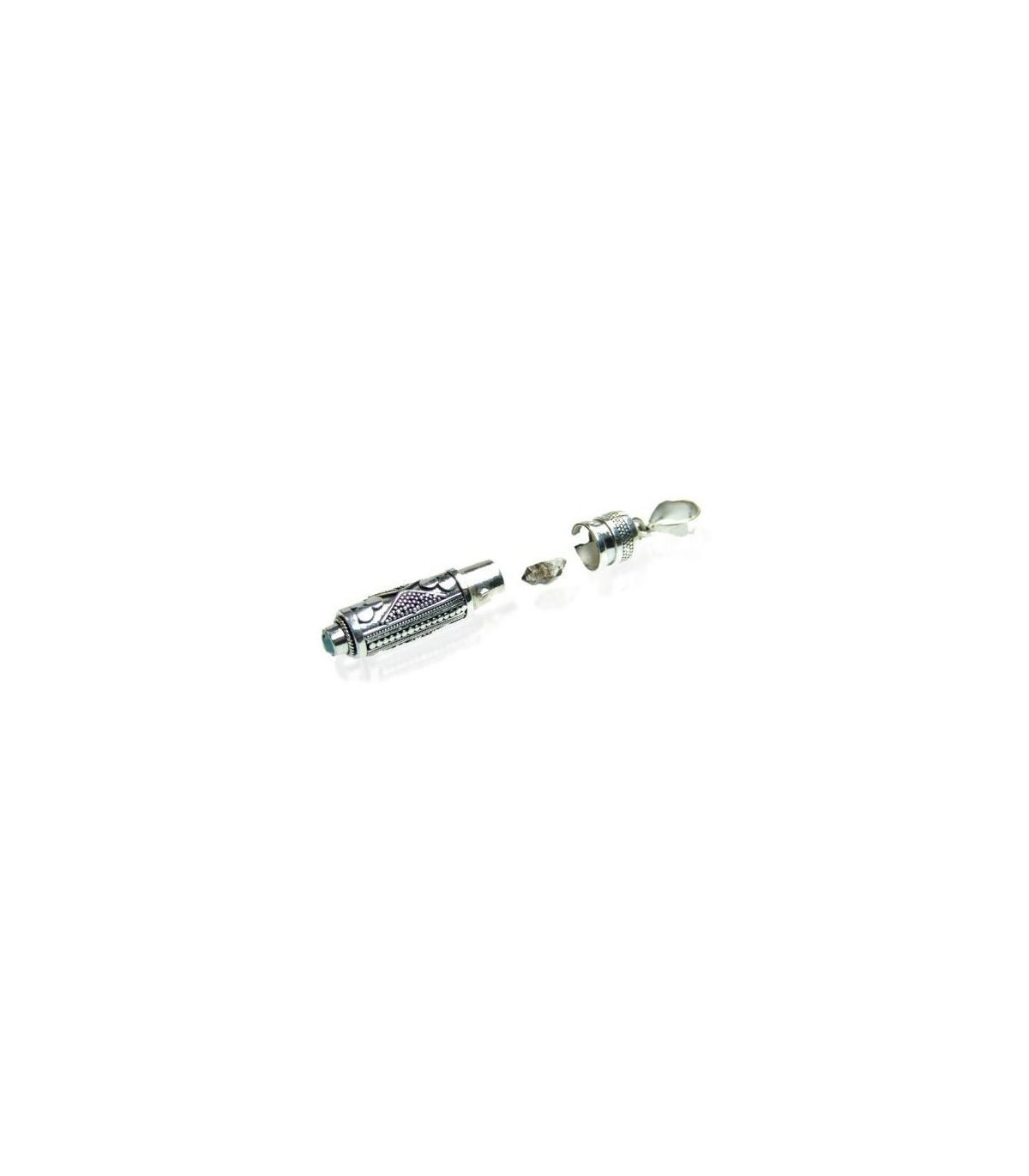 Colgante cofre de los deseos en plata, incluye cuarzo diamante con petróleo y pergamino. Tamaño: 30x8 mm. aprox.