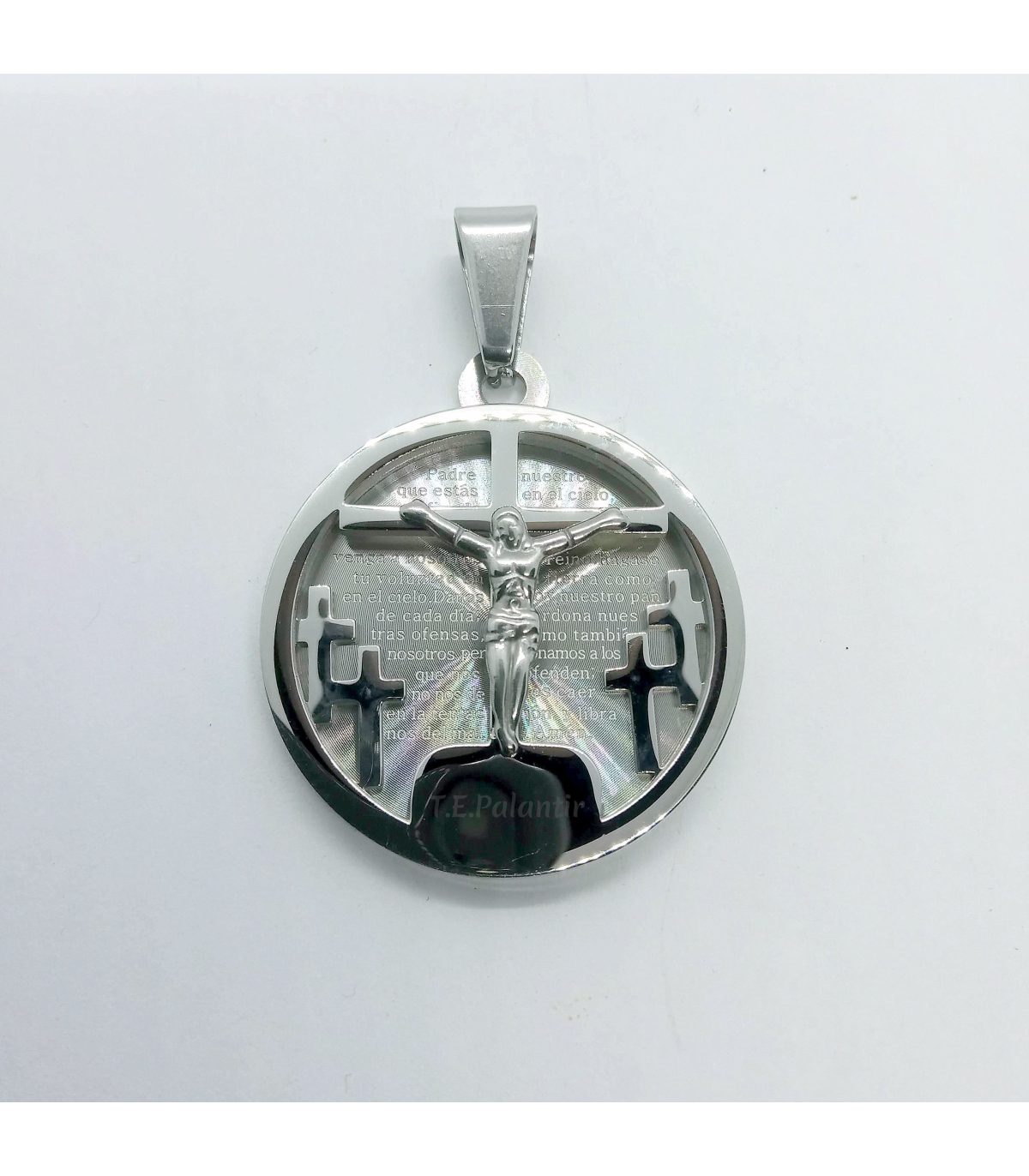 Colgante Crucifijo con Padrenuestro, de acero inoxidable.