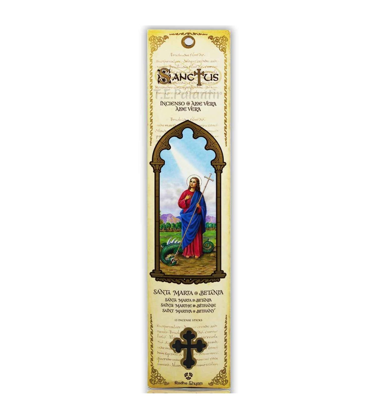 Incienso de Santa Marta de Betania, patrona del hogar. Según la historia sagrada, fue testigo de la resurrección de Jesús, y hermana de San Lázaro, patrón de los enfermos. Su día es el 29 de Julio.