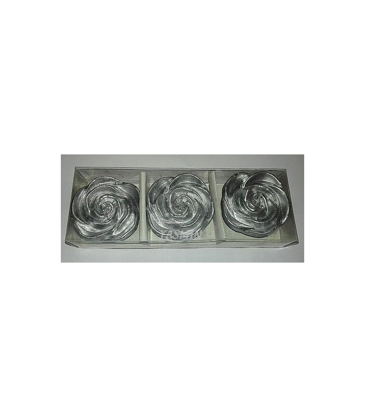 Vela flotante modelo flor, en pack de 3 ud. En color blanco, rojo, oro y plata.