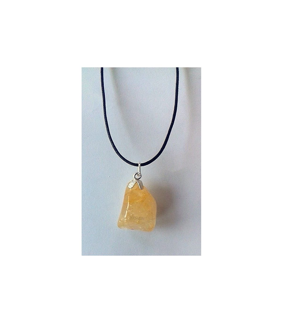 Colgante formado por rodado de cuarzo sanador dorado de 20 mm. aprox. con enganche de plata y cordón de algodón encerado ajustable.