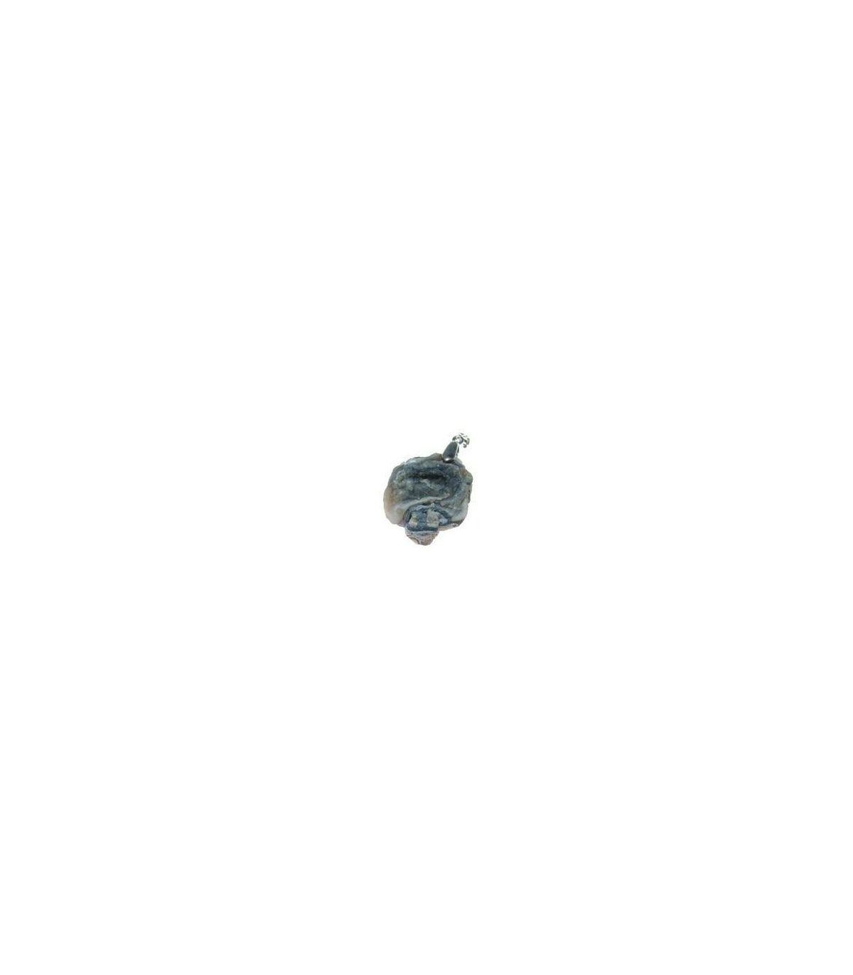 Colgante flor de calcedonia natural en bruto. La calcedonia es un mineral con diversas tonalidades, pero el más conocido es el azulado grisáceo, pertenece a la familia de los cuarzos, suele presentar microcristales que en su estado natural proporcionan un brillo muy atractivo. Se dice que es protectora contra pesadillas y pensamientos negativos.