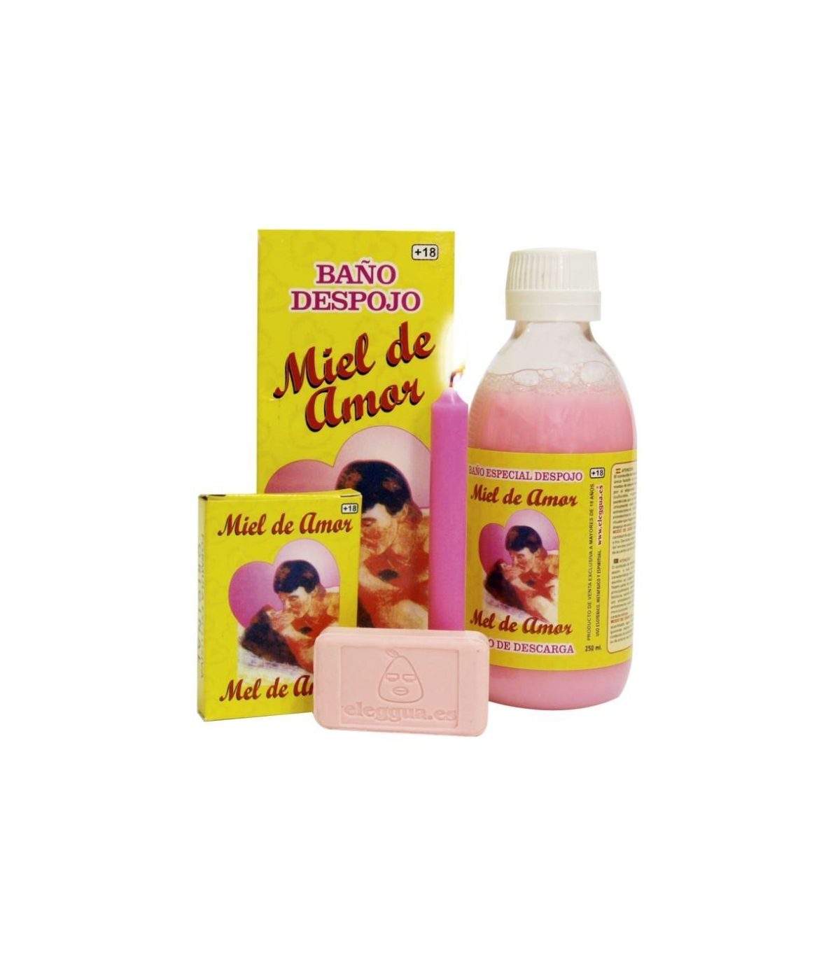 Baño Miel de Amor, en caja con vela y jabón. Especial para atraer hacia nosotros a la persona amada. Modo de empleo: Añadir el contenido de la botella en un litro de agua, usar durante 3 días consecutivos. Encender la vela el tiempo que realice el baño. Apáguela sin soplar y repita la operación los 3 días. El último día dejar que se consuma.