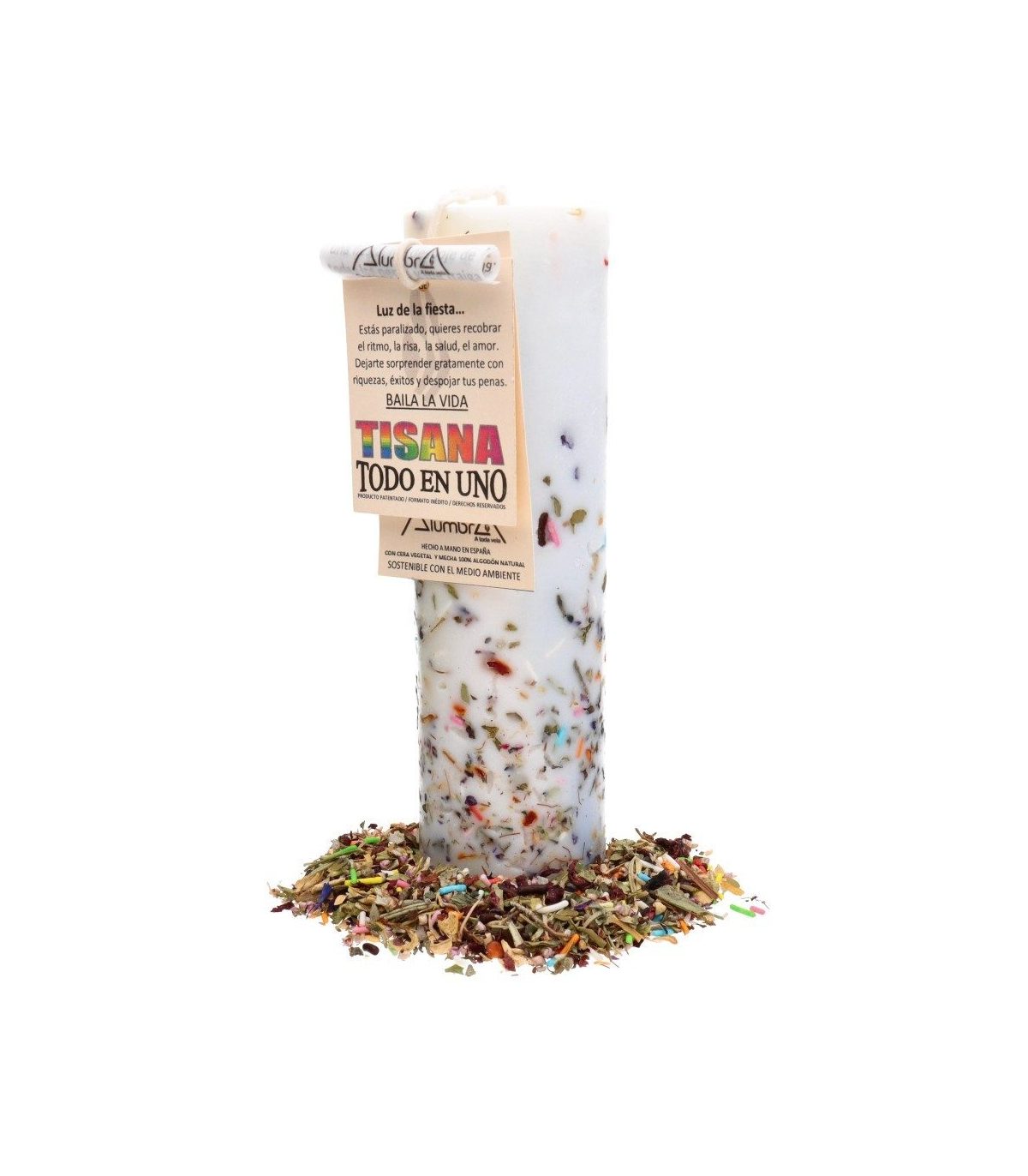 Vela de cera de soja con tisana, elaborada artesanalmente para peticiones de todo tipo: buena suerte, salud, amor, fortuna, etc.