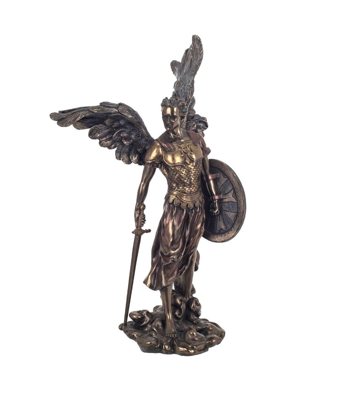 Figura del Arcángel San Miguel 36 cm. Fabricada en resina con acabado en bronce.