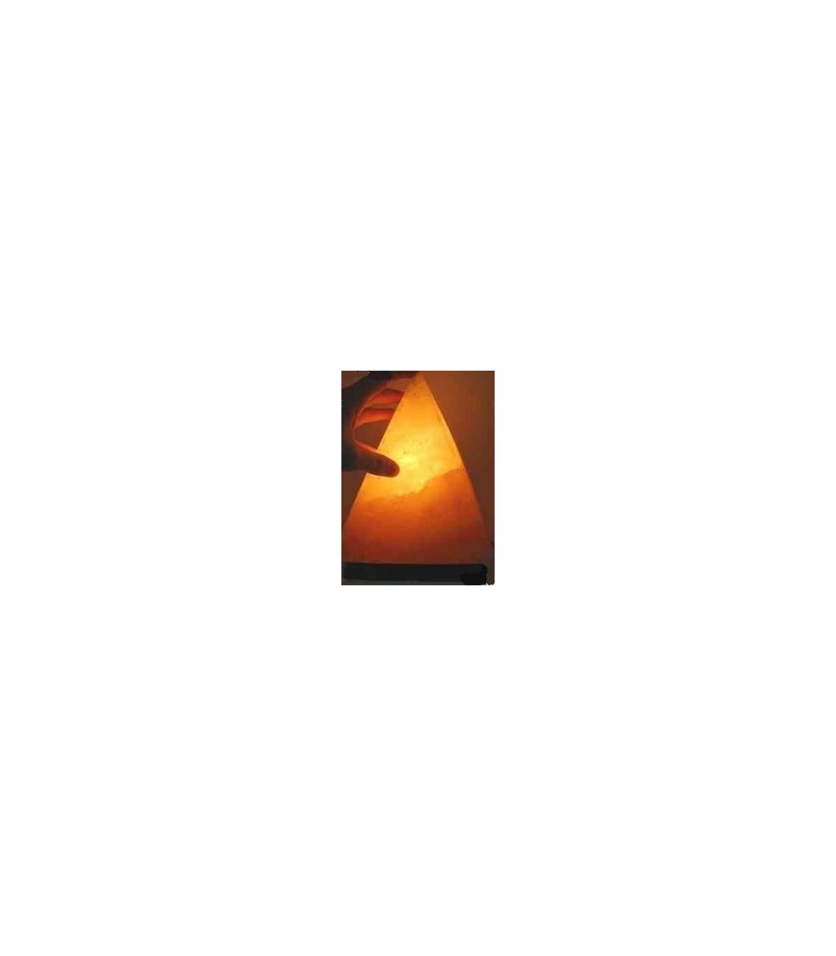 Lámpara de sal en forma de pirámide. Aúna en una misma pieza las propiedades de la lámpara de sal y la belleza de su forma. Incluye cable eléctrico y bombilla. Altura: 17 cms. aprox. Peso: 3,8 Kg. aprox.