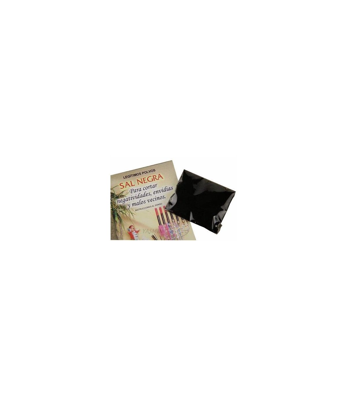 Sal negra en bolsita, especial para corte de negatividades, de envidias y para que los malos vecinos dejen de molestarnos. Incluye instrucciones de uso.