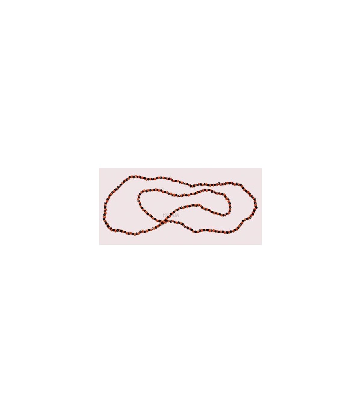 Collar de santería dedicado a Elegguá con sus colores correspondientes. Está formado por cuentas rojas y negras colocadas alternativamente, y la suma de ellas debe ser múltiplo de 3.