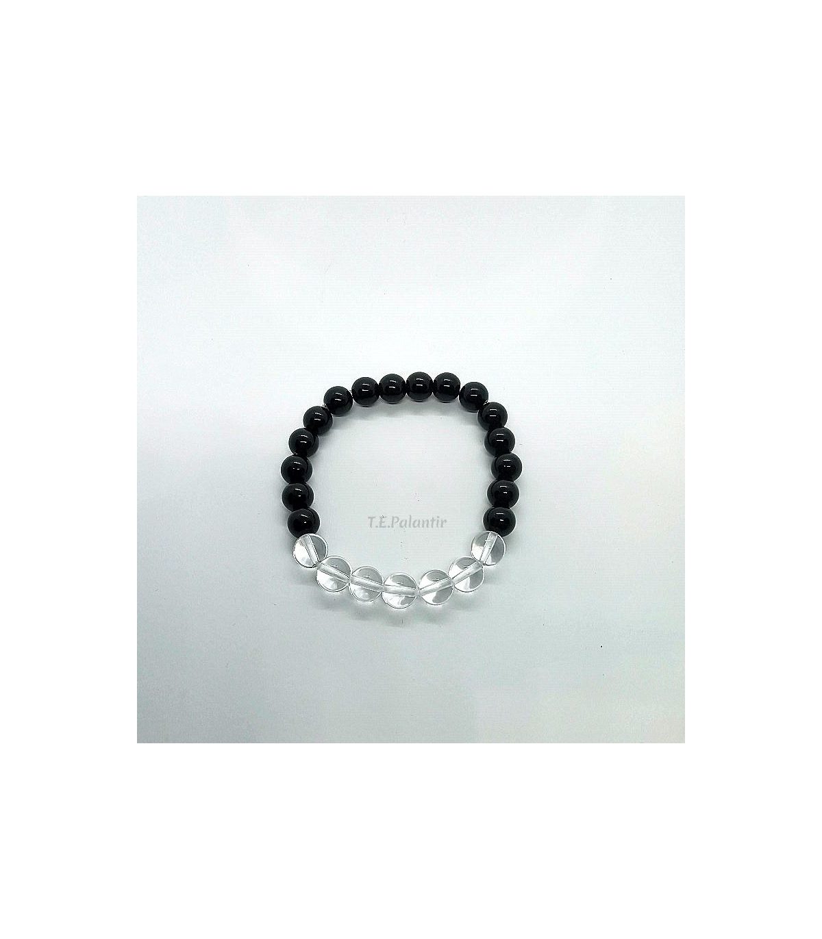 Pulsera de obsidiana negra y cuarzo cristal de roca, en bola de 8 mm. Una combinación perfecta tanto a nivel externo como interno.