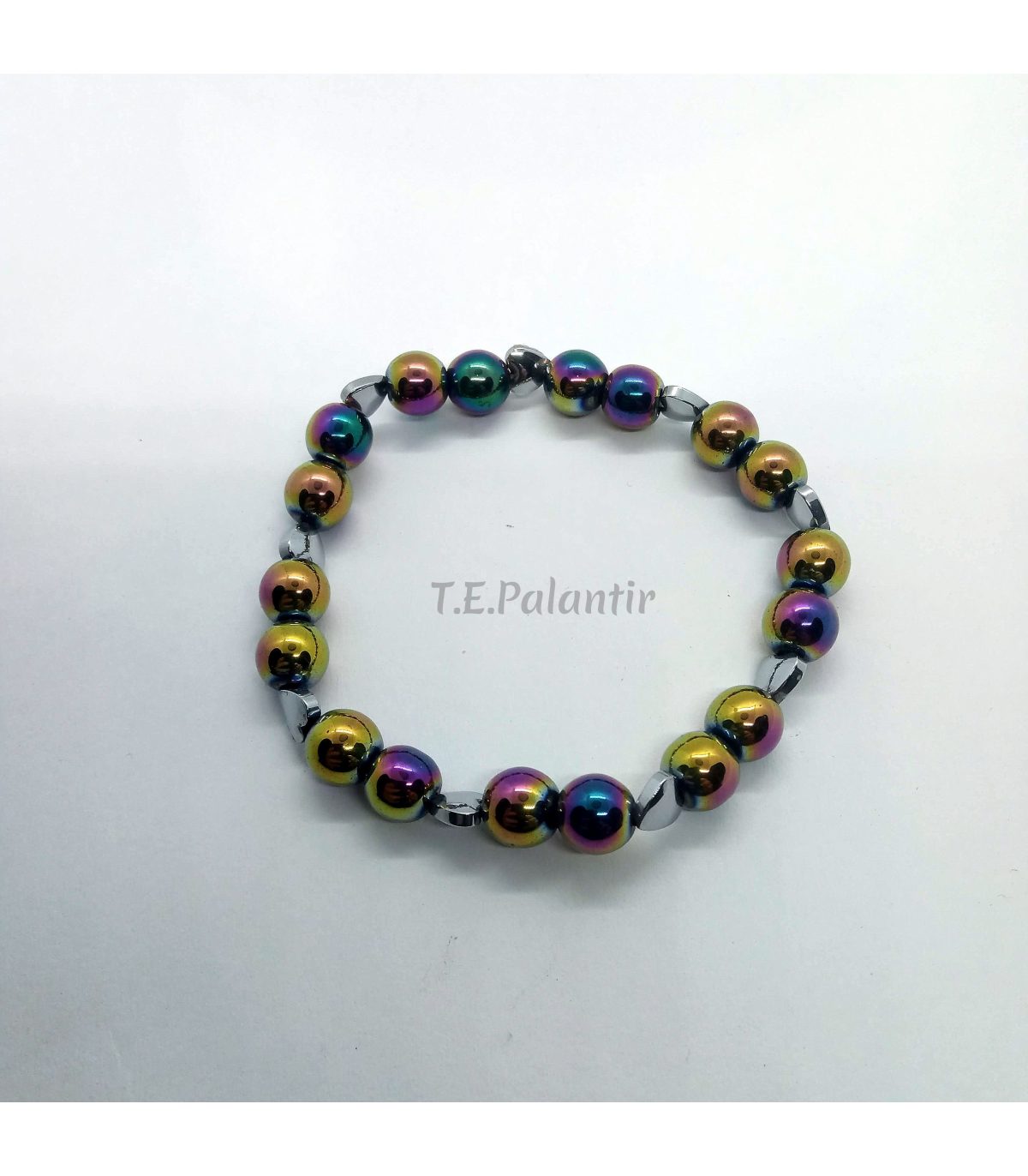 Pulsera bola 8 mm. hematite arco iris. Elástica