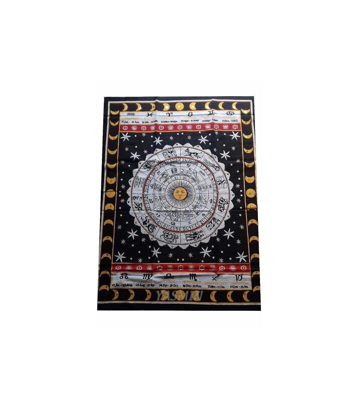 Tapiz hecho a mano 100x100 algodón estampado Zodiaco. 100x70 cms.
