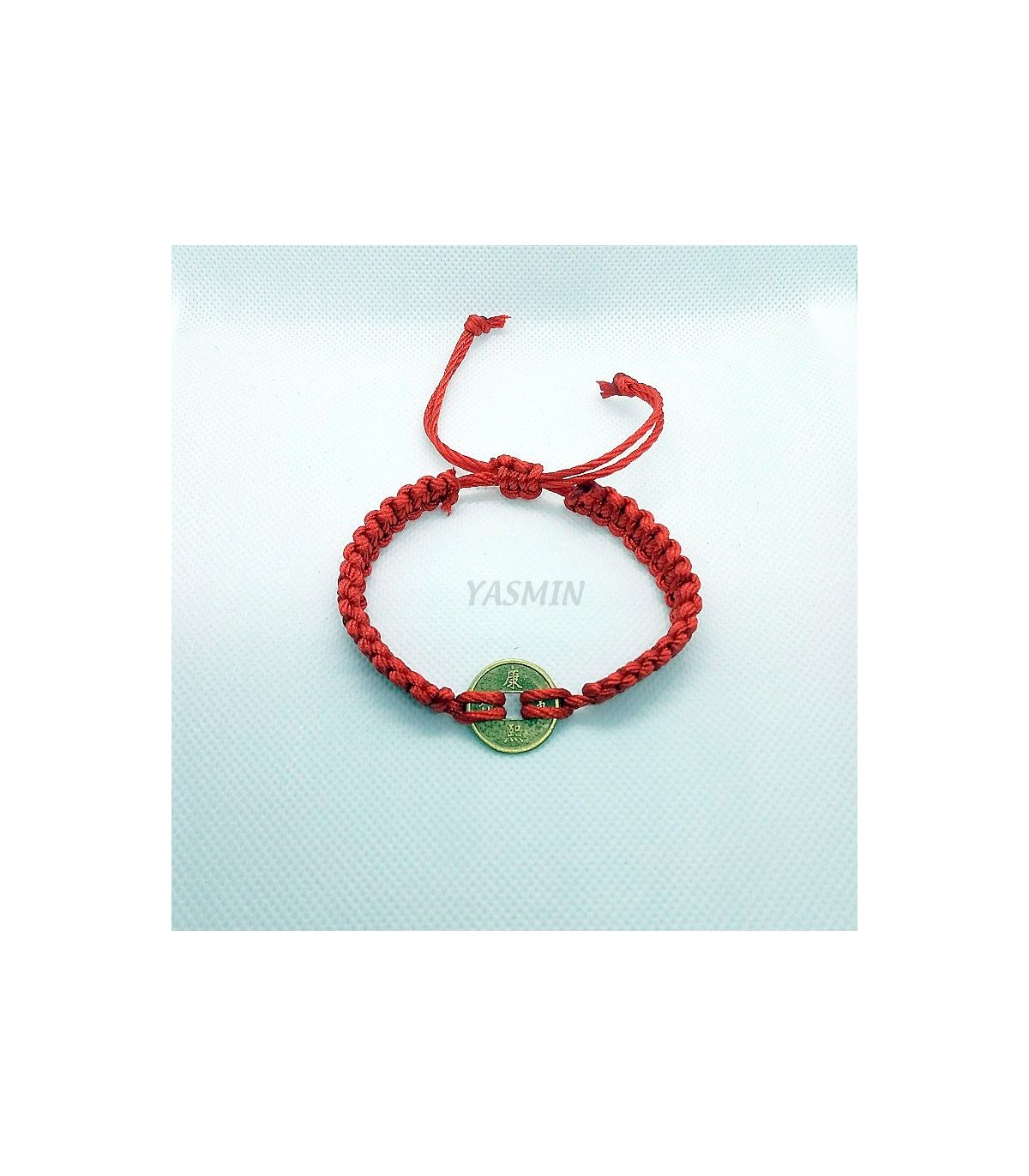Ce bracelet est considéré comme une amulette pour attirer la chance et la richesse, car il combine la pièce et le fil rouge.