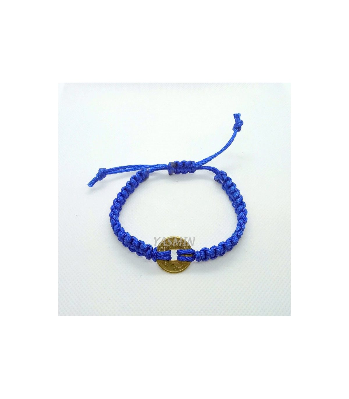 Bracelet pièce de monnaie chinoise, en fil de coton rouge ou bleu, en macramé. Réglable avec noeuds coulissants á toutes les mesures du poignet.