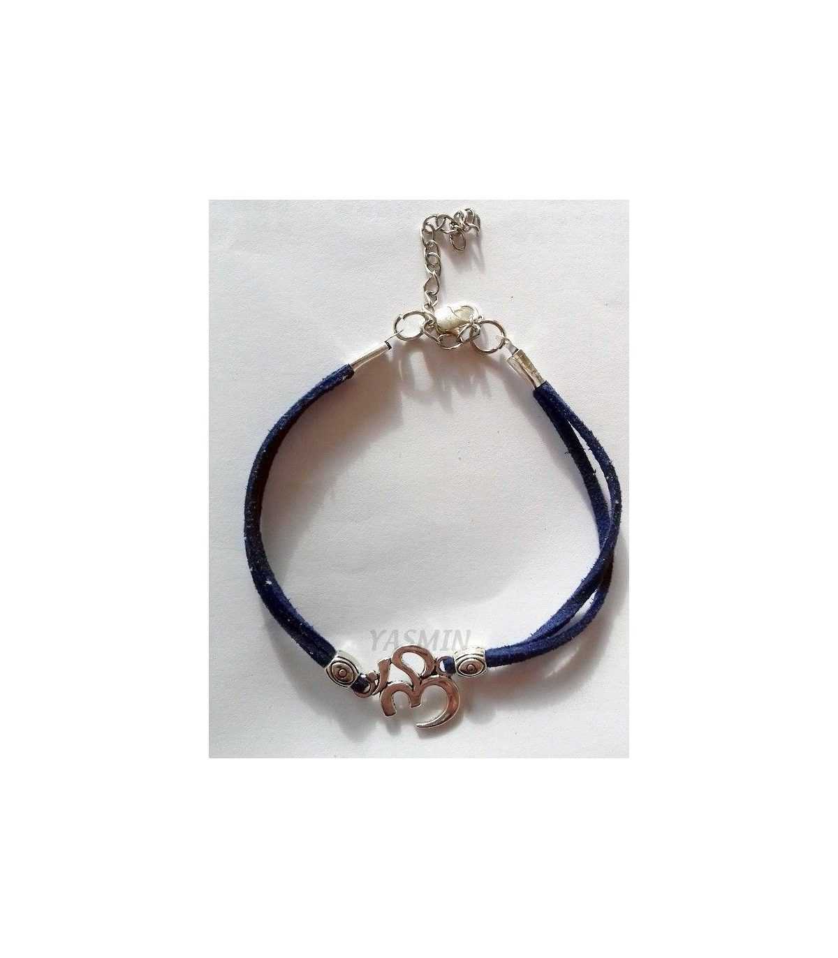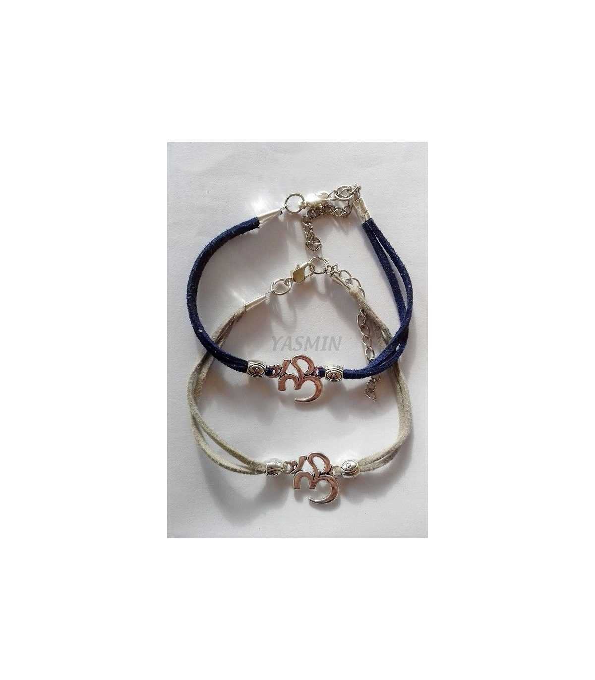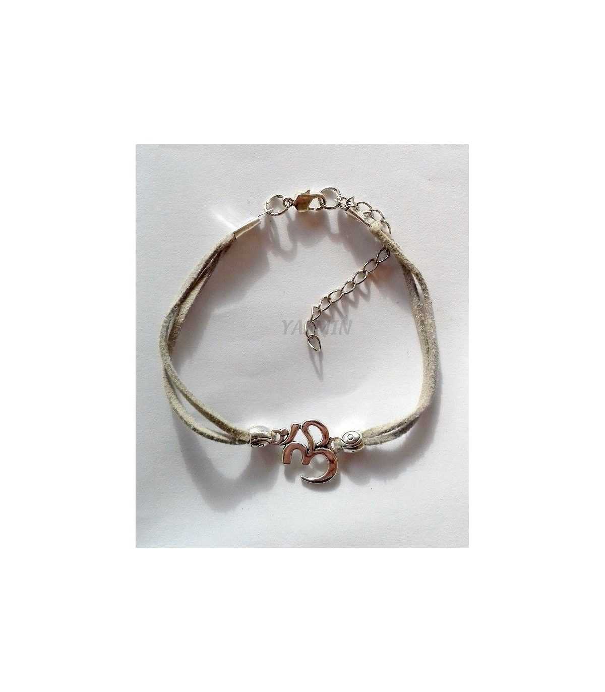 Pulsera símbolo OM, realizada en antelina con cierre tipo mosquetón. Colores a elegir: gris ó marino.