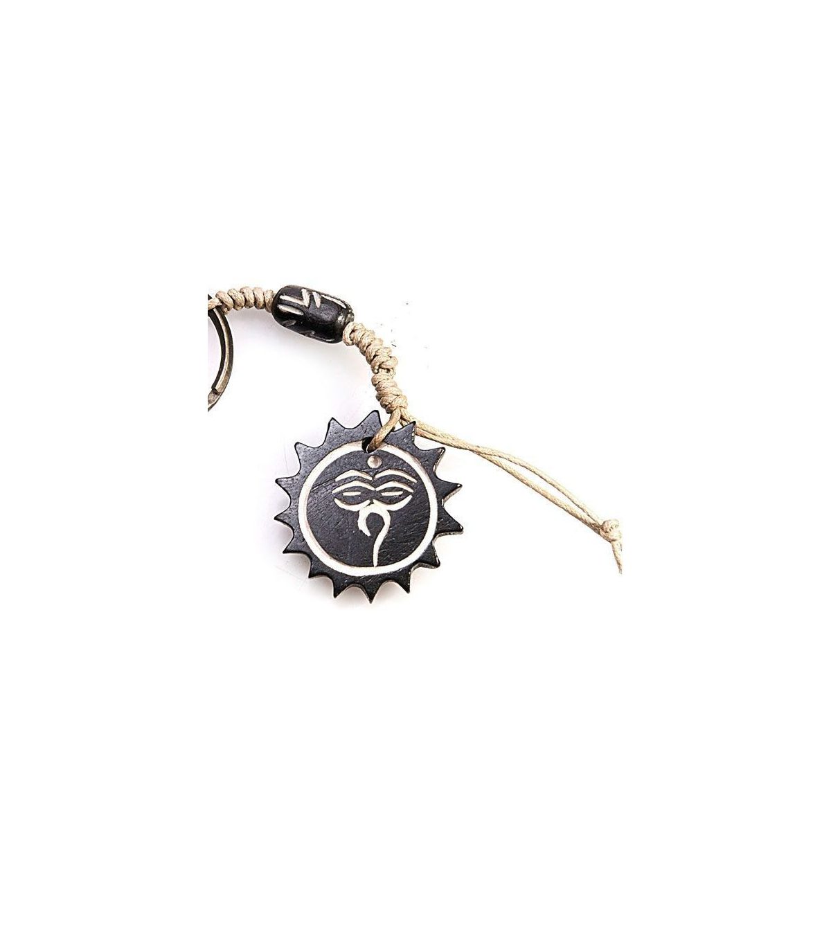 Llavero étnico realizado en madera OJO, que simboliza el control sobre lo que nos rodea.