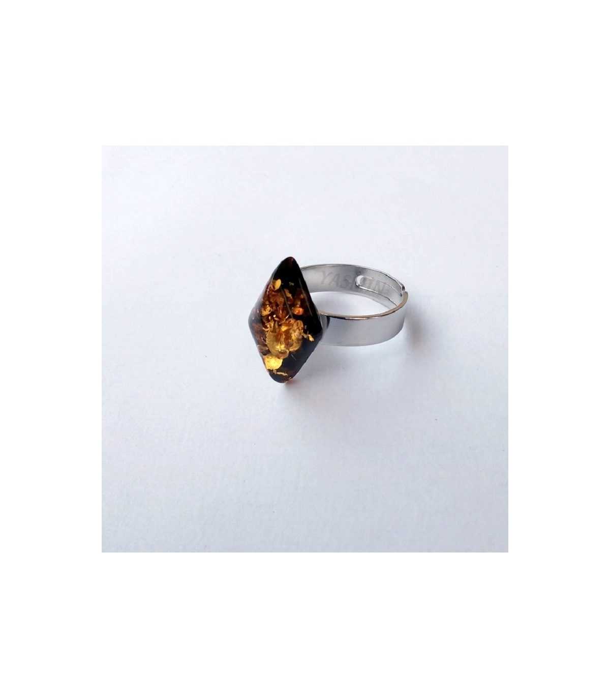 Bague d'ambre en forme de losange, mesure réglable en métal rhodié. Une fois ouvert, il s'adapte à toute taille de doigt. L'ambre n'est pas un minéral, mais une résine fossilisée, très appréciée pour sa beauté et ses propriétés. Taille ambre: 20x10 mm. env. Bague fermée: 19 mm.
