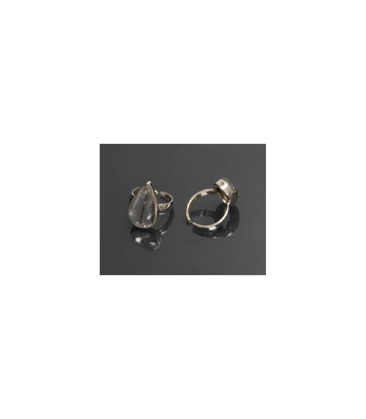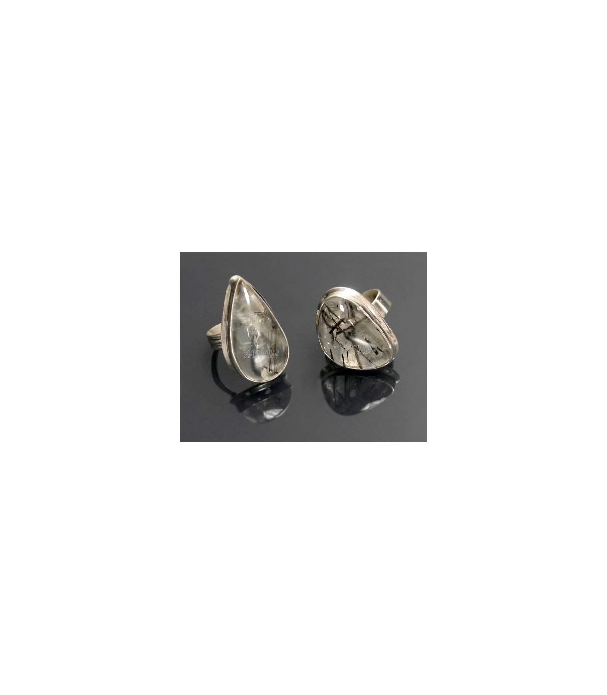 Anillo de cuarzo con turmalina medida adaptable en plata de ley 925.