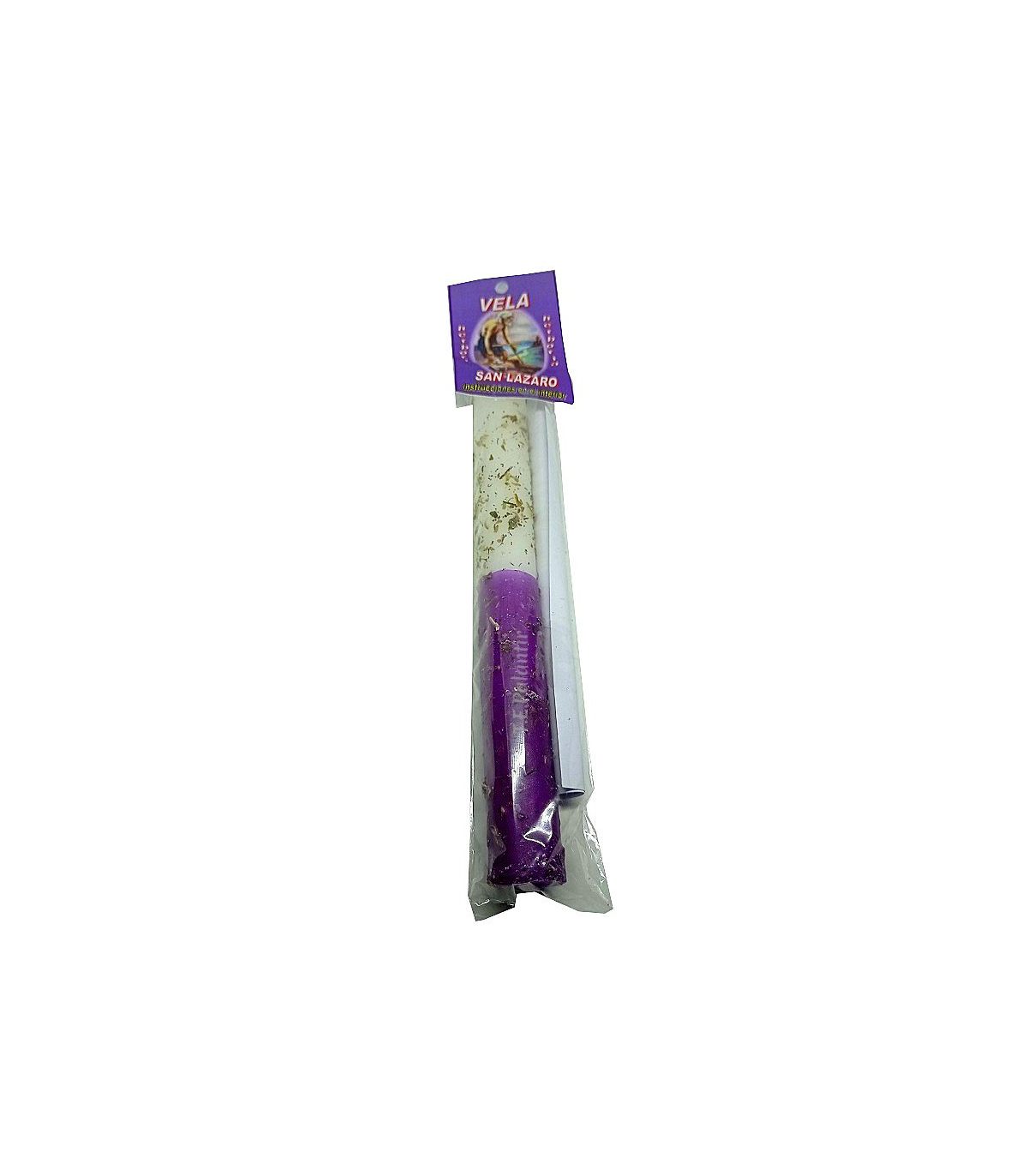 Bougie aux herbes Saint Lázare, pour faire des demandes et des offrandes au saint, en particulier pour la santé et contre les maladies préparée avec des herbes et des essences.