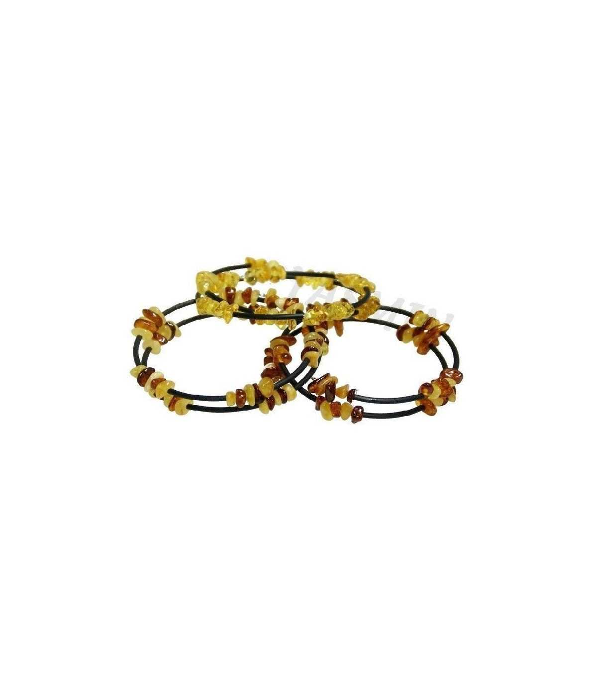 Pulsera ámbar chip con caucho negro en espiral. Colores variados, multicolor y acaramelado.