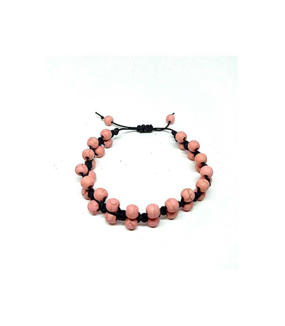 Bracelet en howlite rose, modèle "Mille-Pattes", en macramé avec nœud plat et perles de howlite de 6 mm. inséré dans le fil par paires. Adaptable à n'importe quelle taille de poignet, car il s'ajuste grâce à la fermeture. Produit fait main.