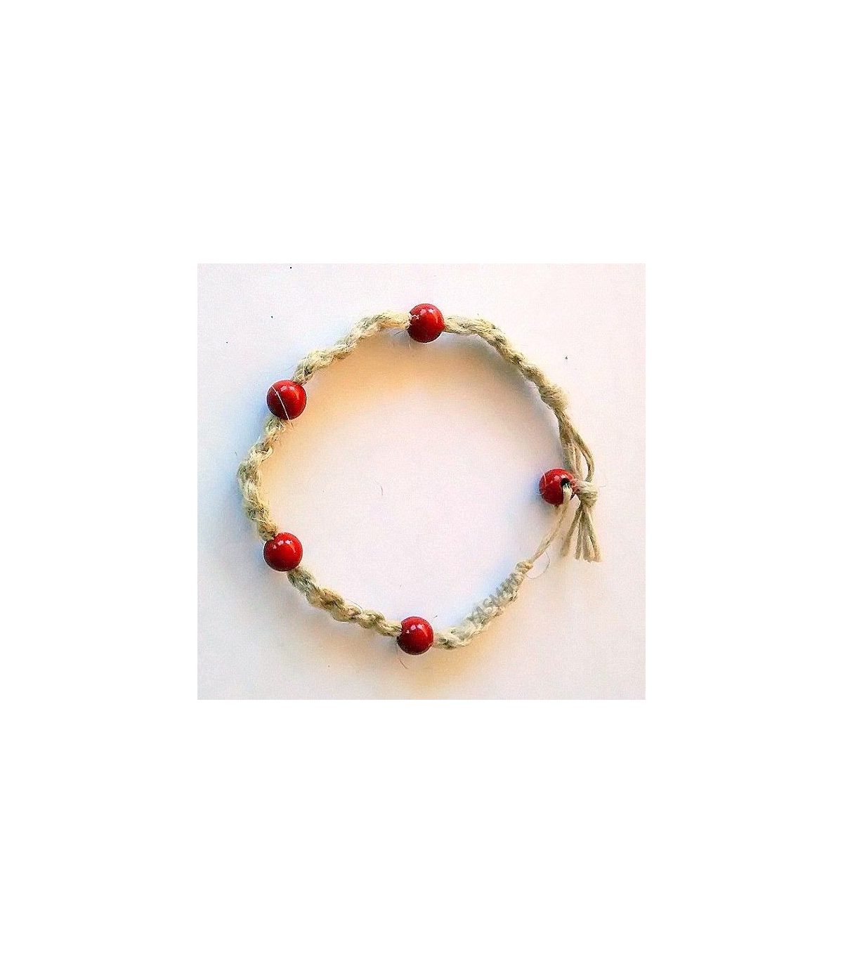 Pulsera cáñamo en macramé con bola 8 mm. jaspe rojo