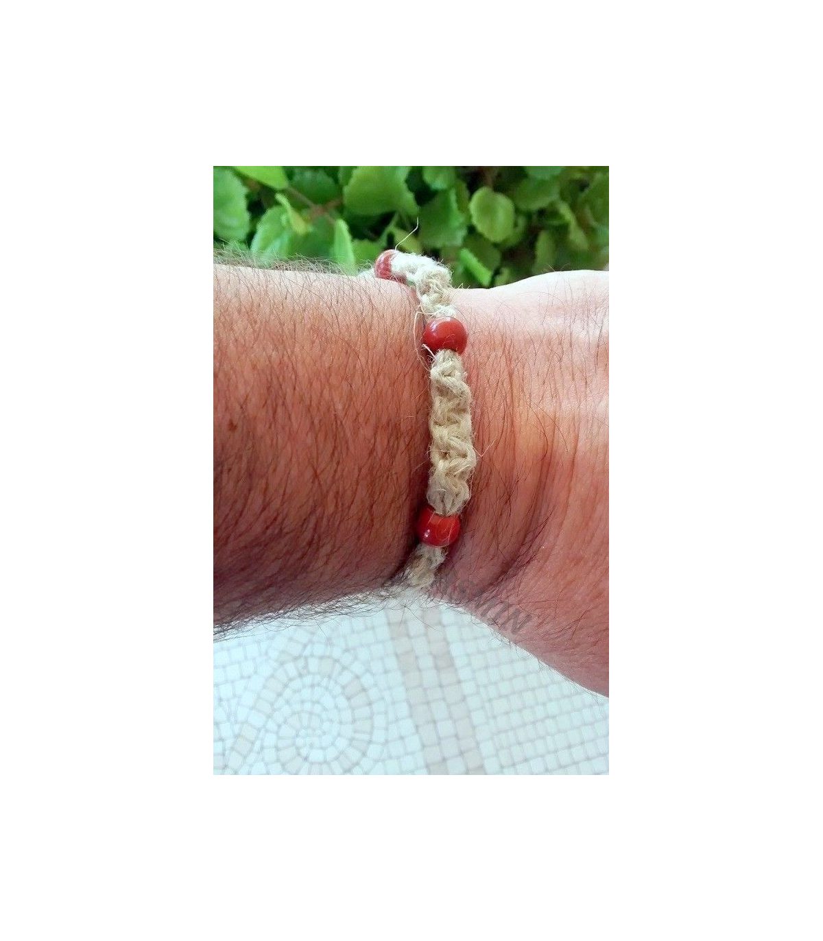 Pulsera unisex de cáñamo natural realizada en macramé con bolas de jaspe rojo de 8 mm.