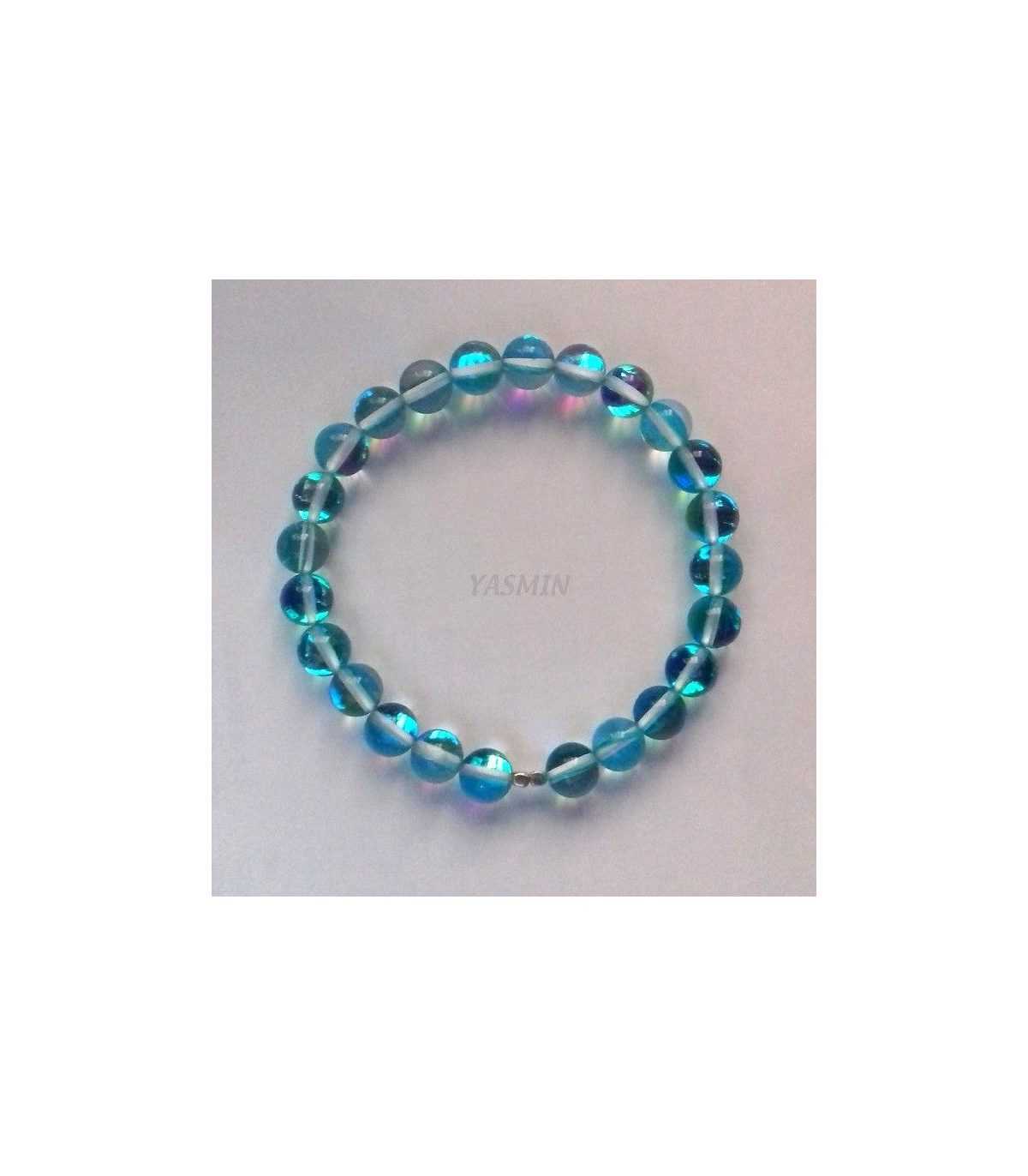Pulsera elástica cuarzo fantasia azul esmeralda, bolas de 8 mm. Medida: 6 cms. diámetro aprox.