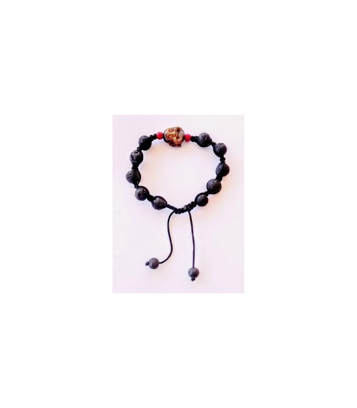 Pulsera tipo "Shamballa", con buda tallado en ojo de tigre y bola lava 8 mm.