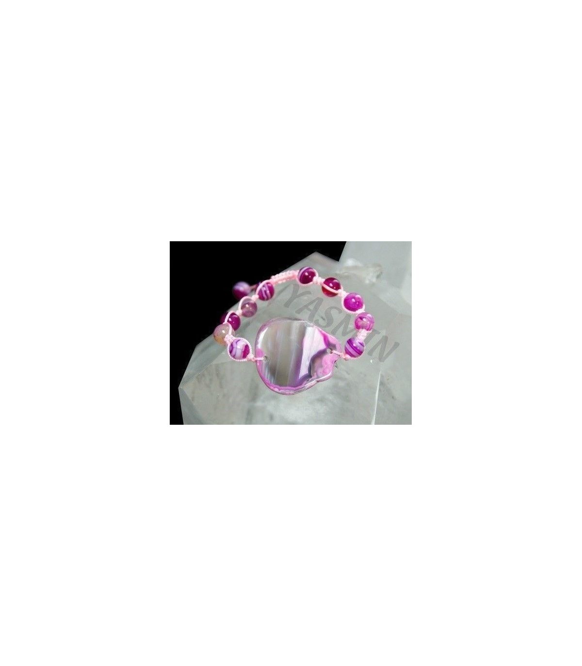 Pulsera Shamballa con centro de ágata rosa, REALIZADA EN MACRAMÉ