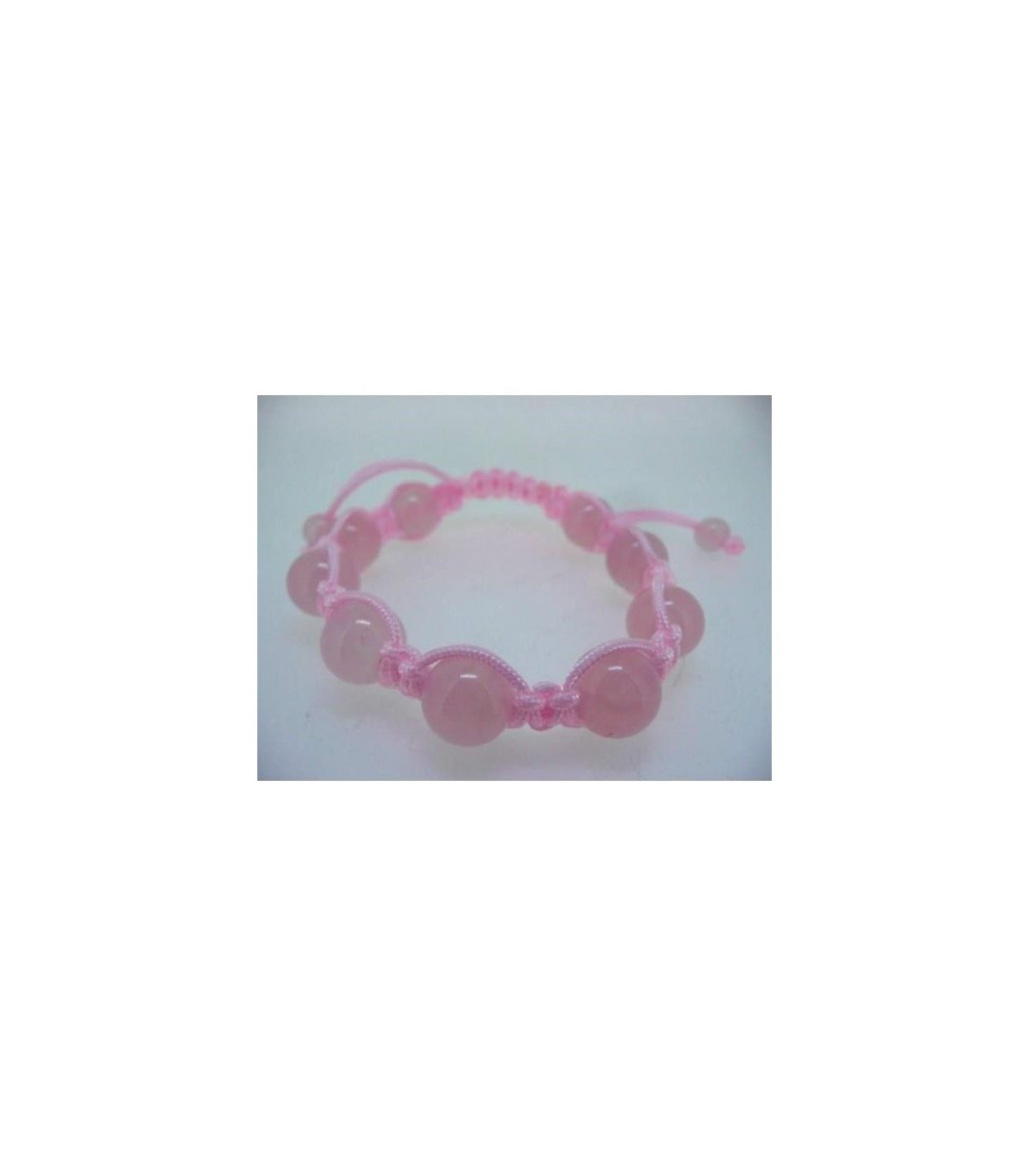 Pulsera tipo "SHAMBALLA" realizada con bolas de cuarzo rosa de 8 mm.