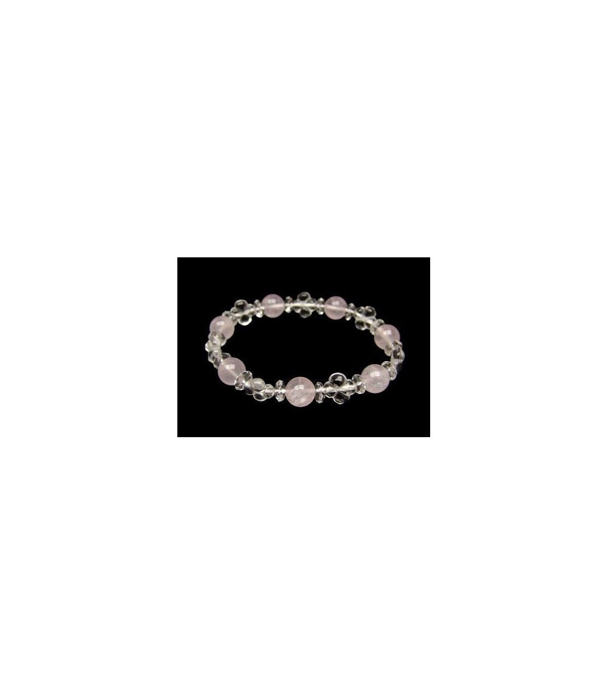 Pulsera elástica con trébol de cuarzo y bola de cuarzo rosa.