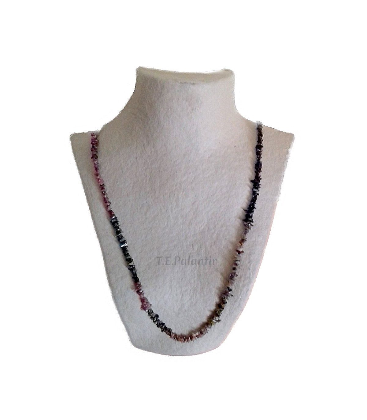 Collier de chip tourmaline multicolore, long, 90 cm. longueur totale. Minéral de première qualité.