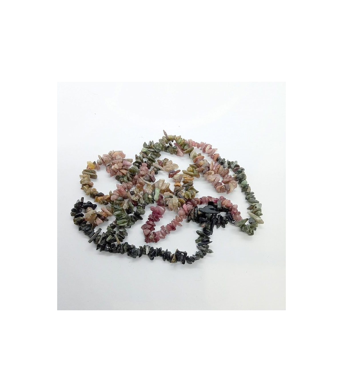 Collier tourmaline multicolore chip. Formé de petits morceaux de ce minéral, poli et serti de fil résistant. Taille du collier: 90 cm.