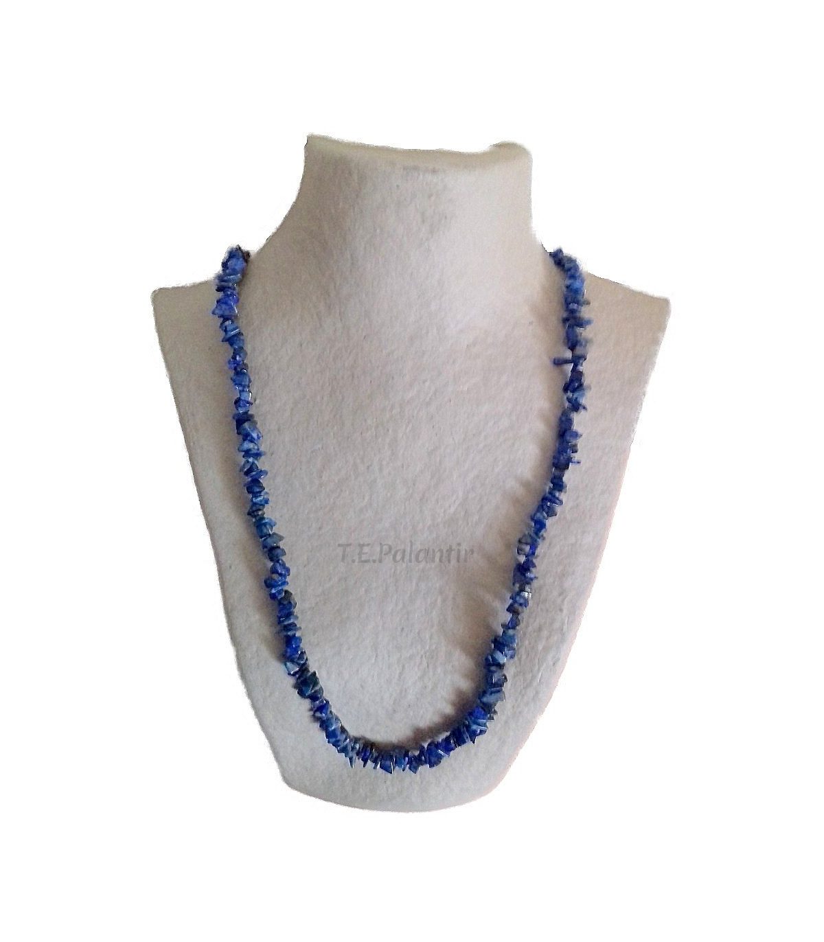 Collier sodalite chip. Formé de petits morceaux de ce minéral, poli et serti de fil résistant. Taille du collier: 90 cm.