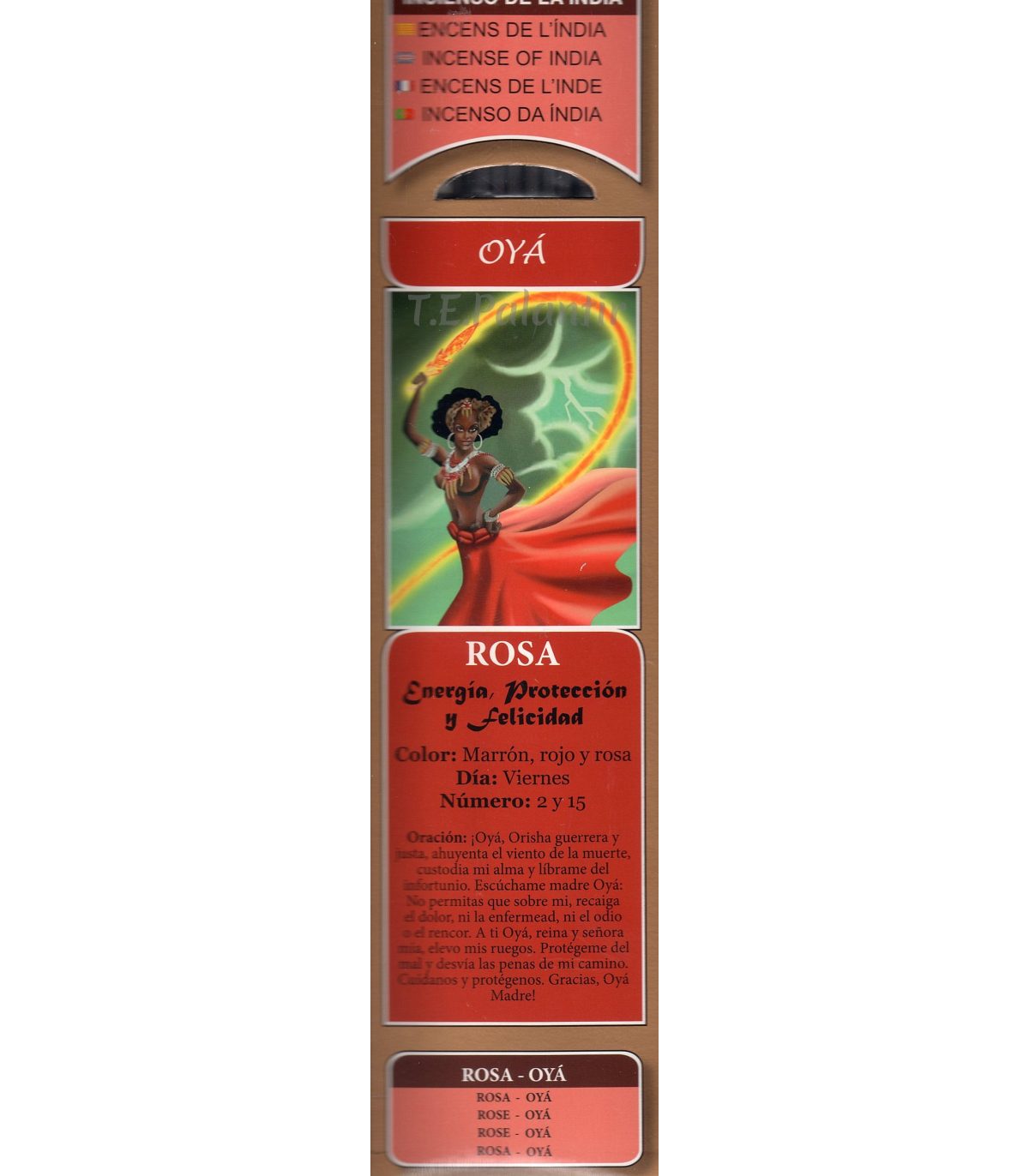 Encens spécial pour les pétitions à Oyá, un guerrier et juste orisha, lié à la protection et au bonheur. Caisse 16 bâtons. Durée env. 1 heure chaque bâton.