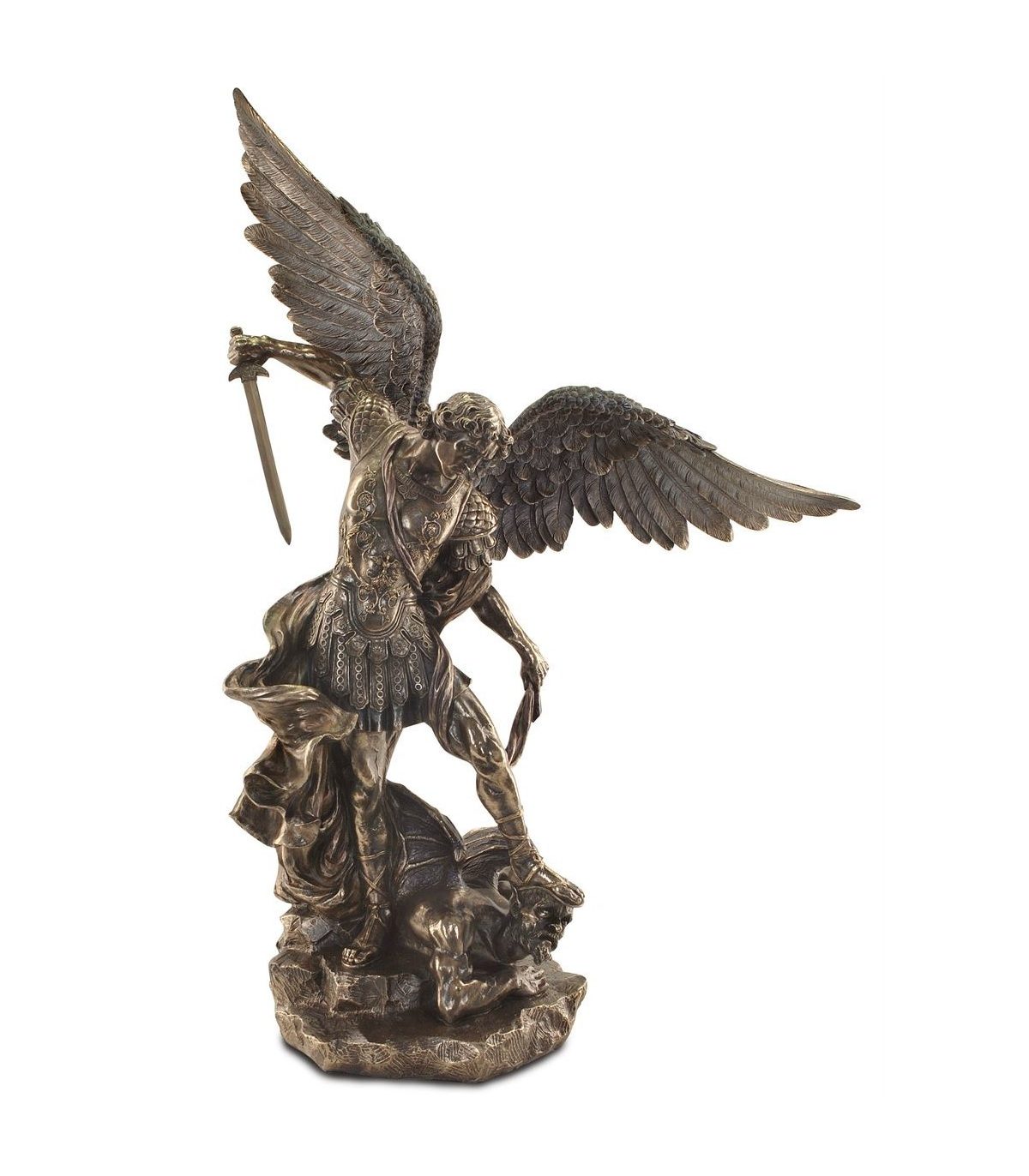 Archange Saint Michel 78 cm. Fabriqué en résine avec finition bronze. Une pièce très spéciale, caractérisée par sa hauteur et ses finitions parfaites.