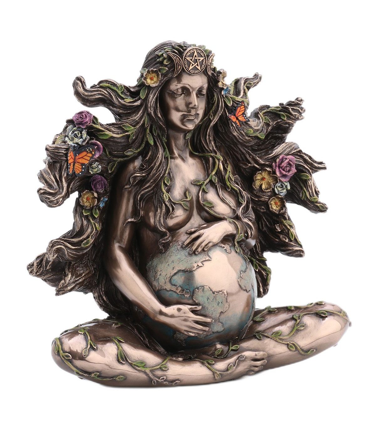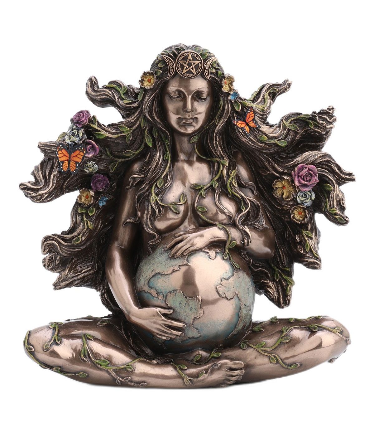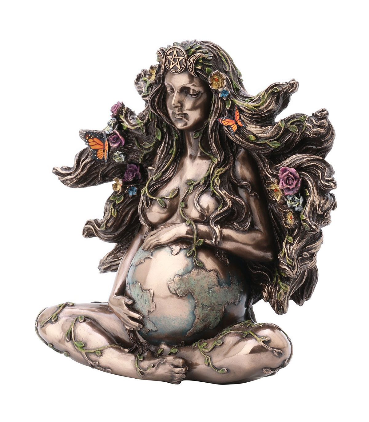 Figure de Gaia, une déesse grecque qui représente la déesse de la terre, enceinte, avec son ventre symbolisant la terre. C'est une déesse primitive de la mythologie grecque, elle était la mère de Cronos et de Rhéa, qui engendra les premiers dieux de l'Olympe : Zeus, Poséidon, Héra, etc.