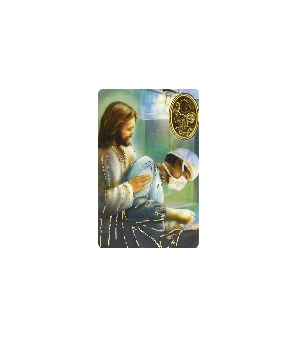 Estampillé avec médaille pour demande de santé. Comprend la prière au revers. Dimensions: 85x54 mm.