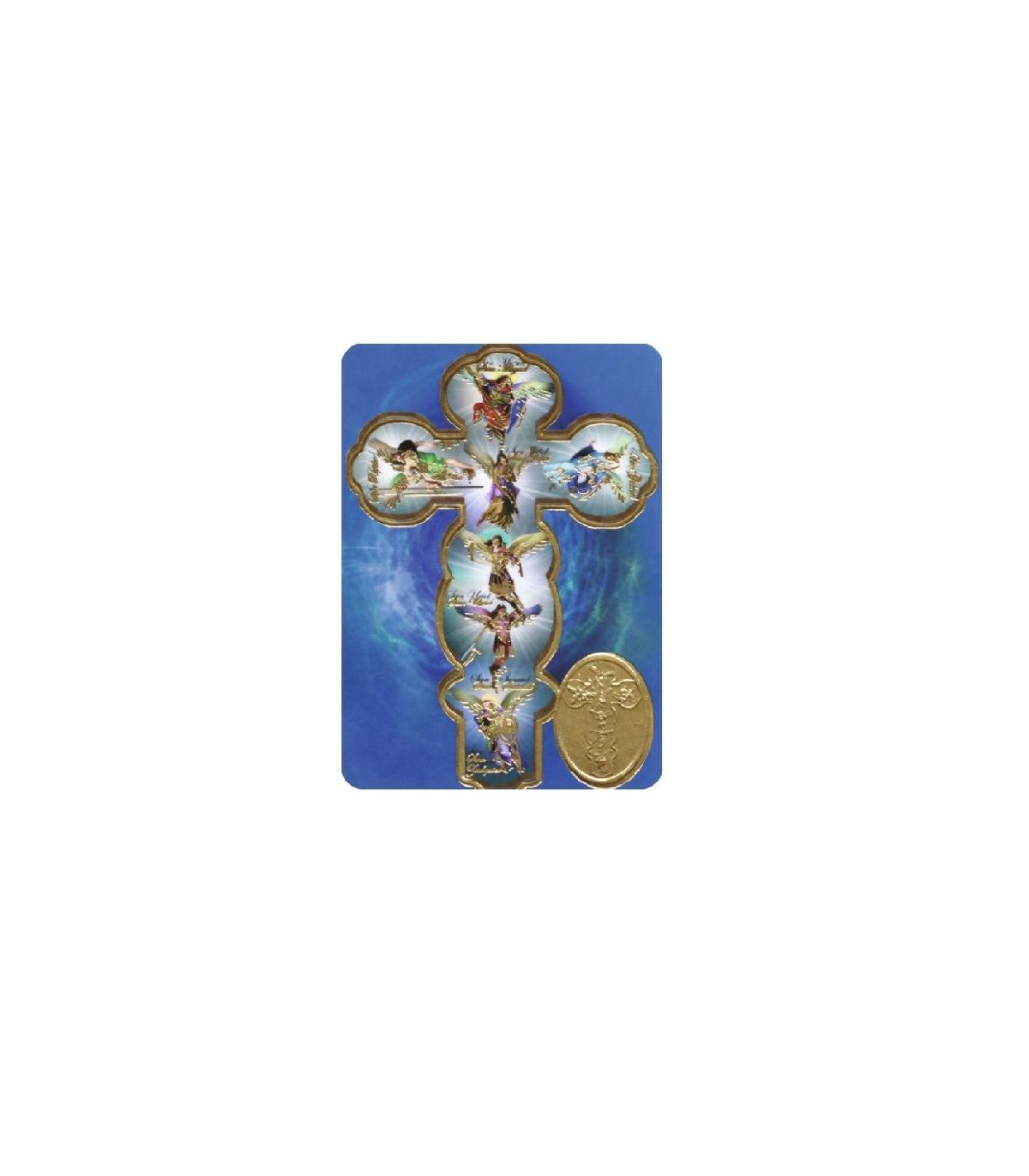 Estampillé avec médaille 7 Archanges. Comprend la prière au revers. Dimensions: 85x54 mm.
