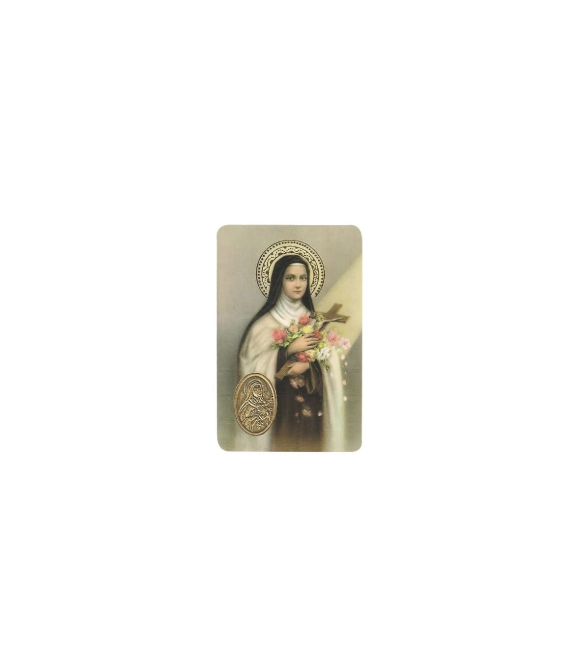 Estampillé avec médaille de Sainte Thérèse d'Avila. Comprend la prière au revers. Dimensions: 85x54 mm.