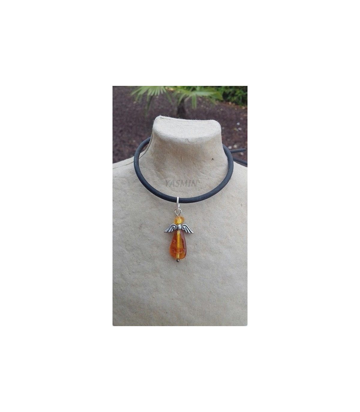 Colgante Angelito de Ámbar, con alas plateadas. Tamaño 25x15 mm. aprox.