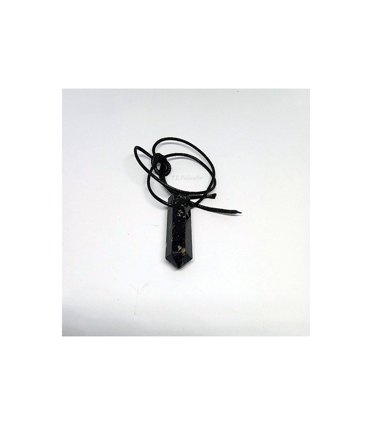 Pendentif générateur de tourmaline noire, taille env. 4x1 cm. La tourmaline noire est l'une des pierres les plus appréciées, car depuis l'Antiquité, elle était considérée comme une pierre protectrice. Nous pouvons en fait considérer la tourmaline noire comme un bouclier protecteur, car elle formera une barrière entre nous et les forces négatives qui nous entourent. C'est une pierre hautement purifiante, et bien qu'il en existe de nombreuses variétés, on considère que la plus protectrice de toutes est celle-ci, la tourmaline noire, également connue sous le nom de "Chorlo".