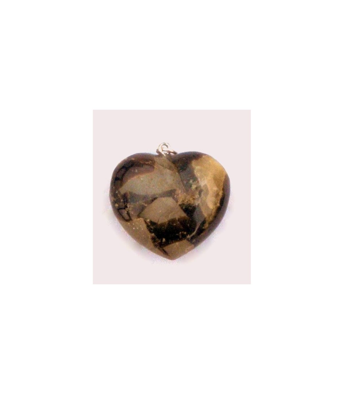 Colgante de Septaria en forma de corazón. Tamaño: 25x30 mm. aprox. Incluye cordón de algodón ajustable. Anilla enganche plata.