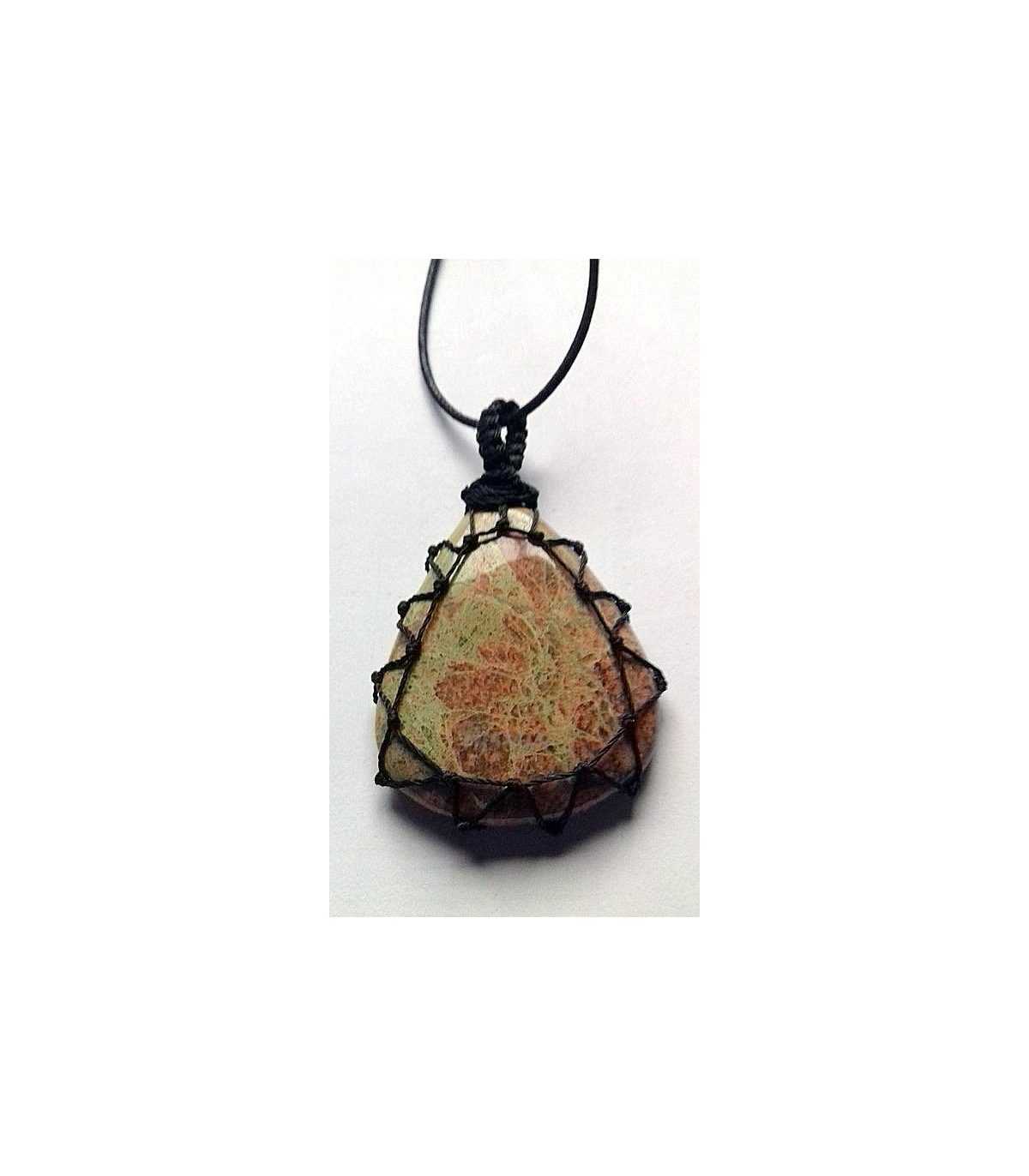 Colgante Unakita forma lágrima engarzado en hilo red de pescar.