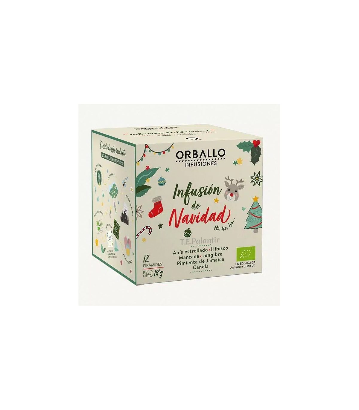 Infusion spéciale Noël à boire pendant ces fêtes. Il vous transportera vers le Noël le plus joyeux dont vous puissiez vous souvenir. Ne contient ni caféine ni théine. Issu de l'agriculture biologique. Fabriqué en Galice. Boîte de 12 pyramides.
