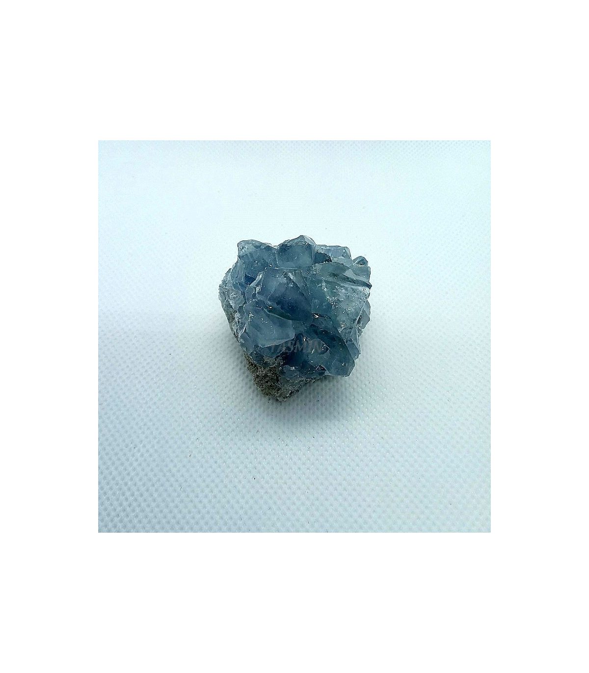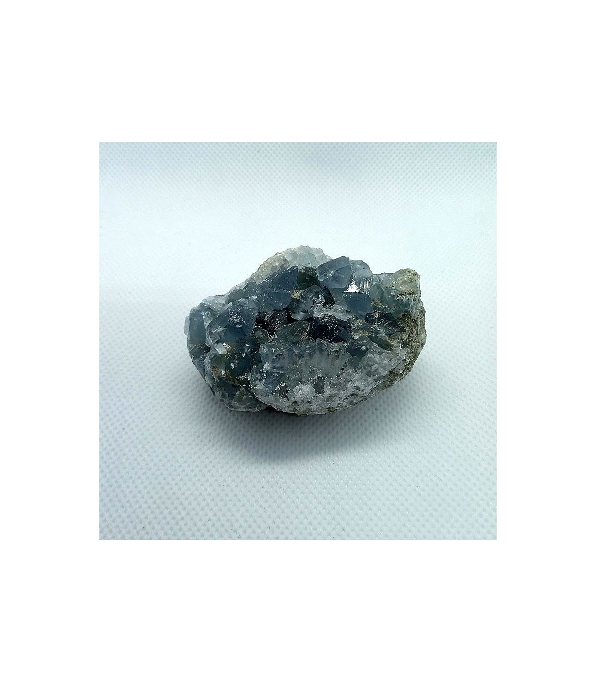 Druse de Célestine, également connue sous le nom de célestite. La célestine est une pierre reconnaissable à sa couleur bleue, qui peut être plus ou moins intense. Il est apaisant, il nous aide à nous calmer, il est donc idéal pour les personnes ayant des problèmes émotionnels. La célestine est indiquée pour agir sur le chakra de la gorge.