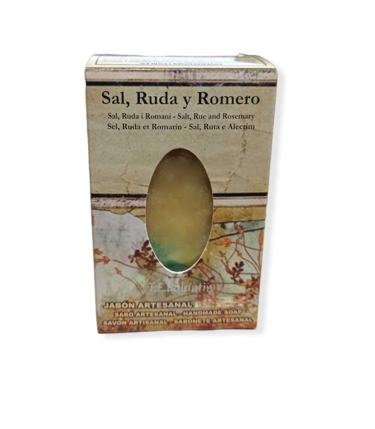 Savon au sel, rue et romarin. Savon artisanal, spécial pour le nettoyage et la protection. Tablette de 100gr.