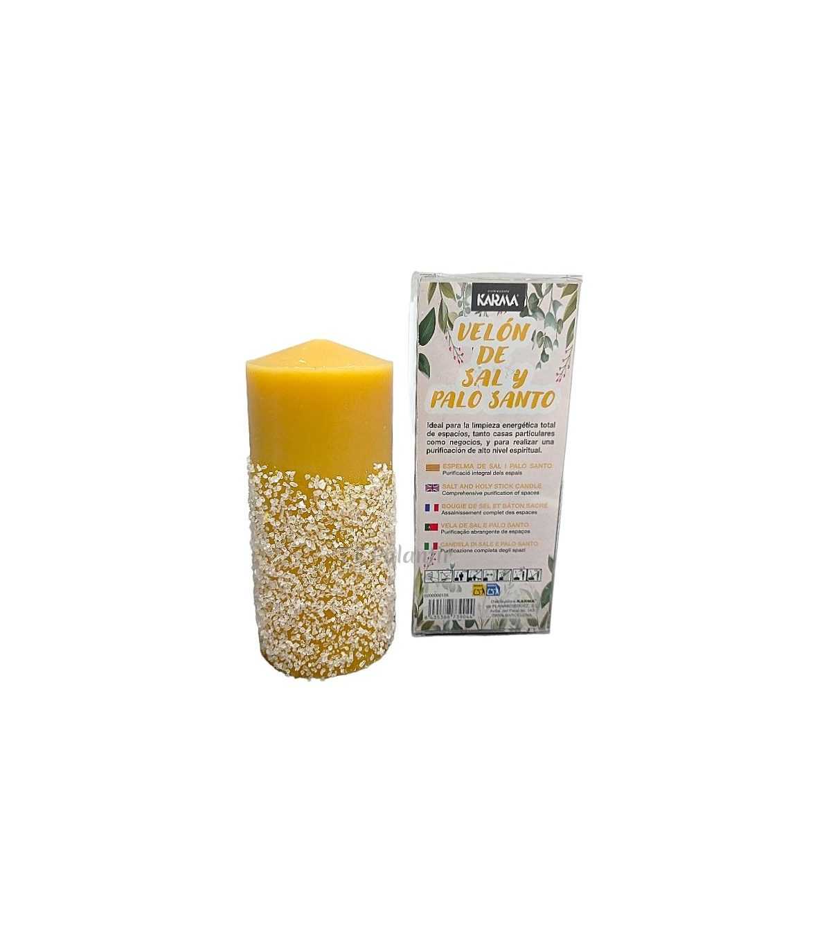 Bougie au sel et bâton sacré, adaptée pour une utilisation lorsque l'on souhaite nettoyer énergétiquement les espaces, aussi bien les maisons privées que les entreprises. Haut pouvoir nettoyant et purifiant